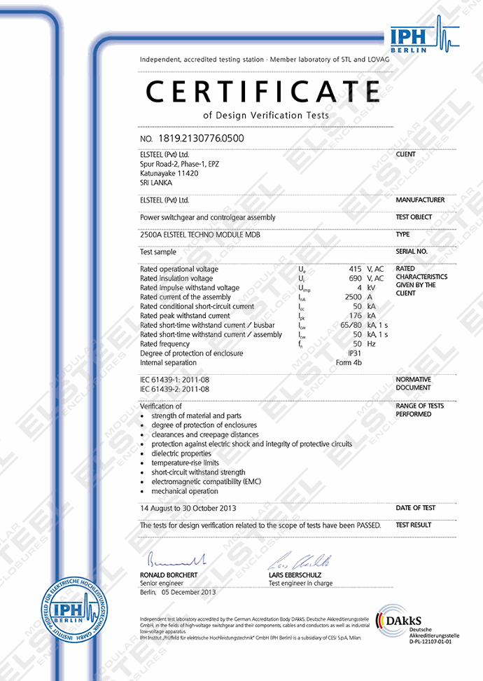 2500A Design Verified with General Electric circuit breakers